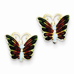 14k Yellow Gold Enameled Butterfly Post Earrings