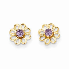 14k Yellow Gold Flower w/Purple CZ Post Earrings