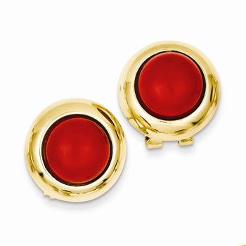 14k Yellow Gold Omega Clip Coral Earrings