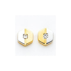 14k Yellow Gold Polished Rhodium CZ Fancy Post Earrings