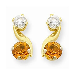 14k Yellow Gold Synthetic Citrine (Nov) Post Earrings