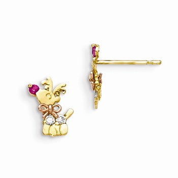 14k Yellow Gold Yellow Rose Gold CZ Childrens Reindeer Post Earrings