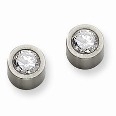 Stainle Steel Brushed CZ Post Earrings