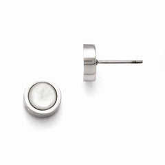 Stainle Steel Polished Large Mother of Pearl Post Earrings