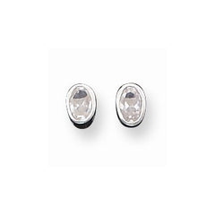 Sterling Silver 3x5mm CZ Oval Bezel Stud Earrings