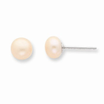 Sterling Silver 6.5-7mm FW Cult. Button Pearl Peach Earrings