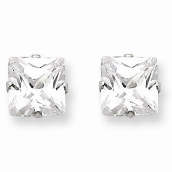 Sterling Silver 6mm Square CZ 4 Prong Stud Earrings