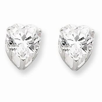 Sterling Silver 7mm Heart 3 Prong CZ Stud Earrings