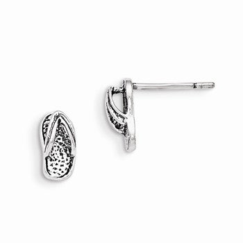 Sterling Silver Antiqued Flip Flop Post Earrings