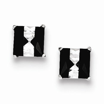 Sterling Silver Black and White Colored CZ 6mm Square Post Earrings