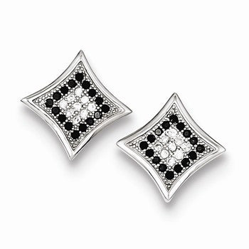 Sterling Silver Black and White CZ Pave Square Post Earrings