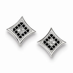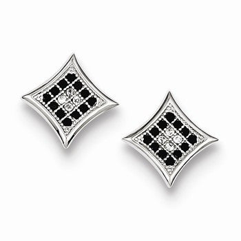 Sterling Silver Black and White CZ Pave Square Post Earrings