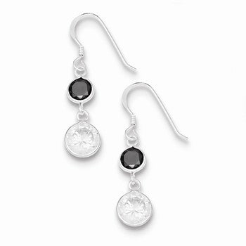 Sterling Silver Black Clear CZ Dangle Earrings