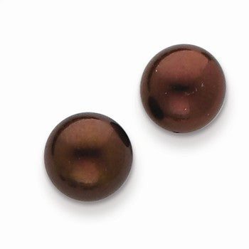 Sterling Silver Brown 8-9mm Freshwater CulturedButton Pearl Stud Earrings