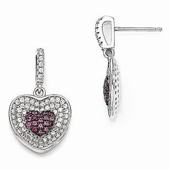 Sterling Silver CZ Heart Dangle Post Earrings