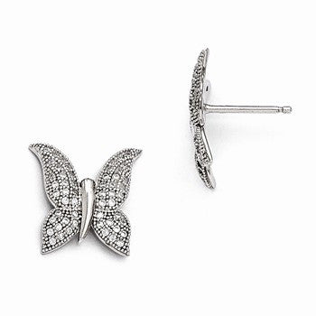 Sterling Silver CZ Polished Butterfly Post Earrings