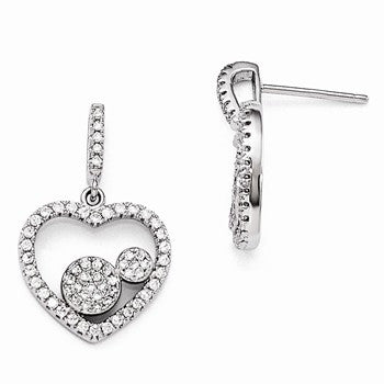 Sterling Silver CZ Polished Heart Dangle Post Earrings