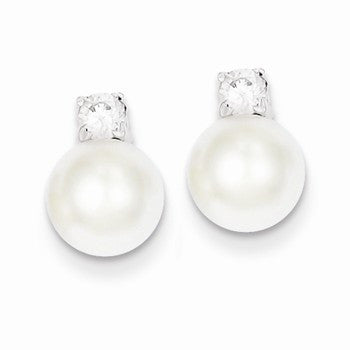 Sterling Silver CZ Simulated Pearl Post Earrings