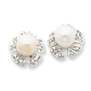 Sterling Silver CZ Simulated Pearl Post Earrings
