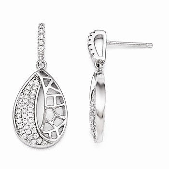 Sterling Silver CZ Teardrop Dangle Post Earrings