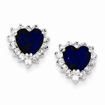 Sterling Silver Dark Blue and Clear CZ Heart Earrings
