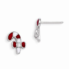 Sterling Silver Enameled Swarovski Elmts Candy Cane Earrings