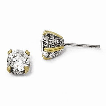 Sterling Silver Gold-plated 6.5mm CZ Stud Earrings