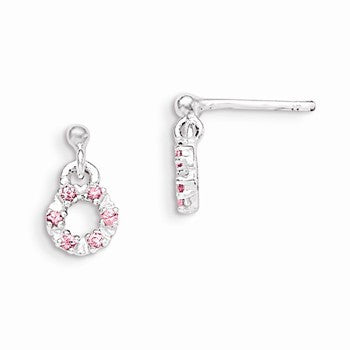 Sterling Silver Pink and White CZ Circle Kids Post Dangle Earrings