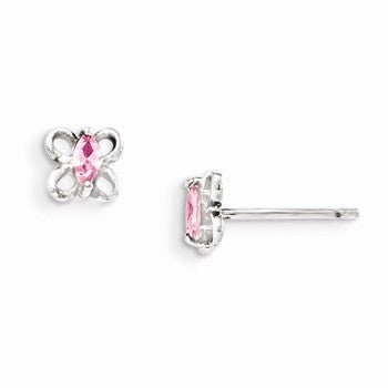 Sterling Silver Pink CZ Butterfly Kids Post Earrings