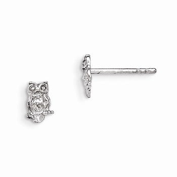 Sterling Silver RH Plated Childs Polished Owl Post Earrings