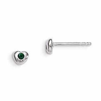 Sterling Silver RH Plated Childs Preciosca Crystal May Heart Earrings