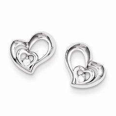 Sterling Silver Rhodium Plated CZ Heart Post Earrings