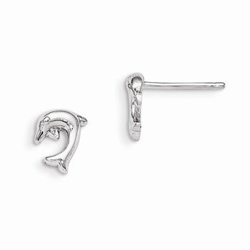 Sterling Silver Rhodium Plated Dolphin Post Earrings