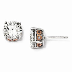 Sterling Silver Rose Gold-plated Heart 8mm CZ Stud Earrings