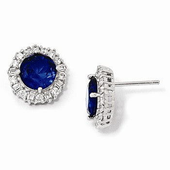 Sterling Silver Synthetic Blue Spinel CZ Post Earrings