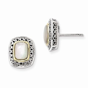 Sterling Silver w/14k Yellow Gold Antiqued MOP Post Earrings