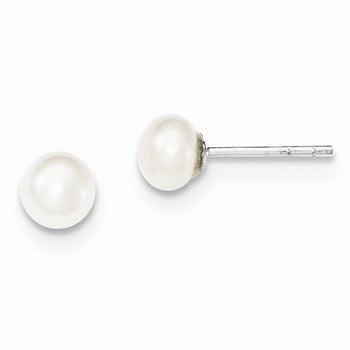 Sterling Silver White Freshwater CulturedPearl 5-5.5mm button Earrings