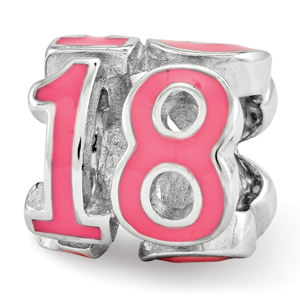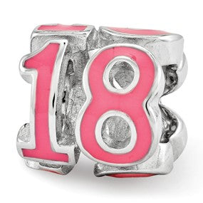 Pink Enameled 18 Charm Bead in Sterling Silver