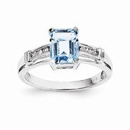 14k White Gold Blue Topaz and White Topaz Square Ring