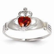 14k White Gold CZ January Birthstone Claddagh Heart Ring