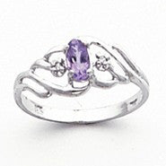 14k White Gold Diamond & Amethyst Birthstone Ring