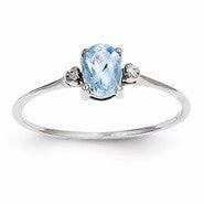 14k White Gold Diamond & Blue Topaz Birthstone Ring