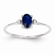 14k White Gold Diamond & Sapphire Birthstone Ring