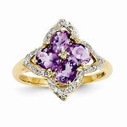14k Yellow Gold Amethyst and Diamond Ring