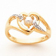 14k Yellow Gold Diamond & Cultured Pearl Birthstone Heart Ring