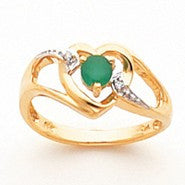 14k Yellow Gold Diamond & Emerald Birthstone Heart Ring