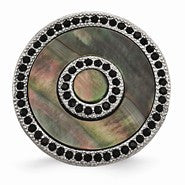 Stainless Steel Polished Black Mother of Pearl and Crystal Ring