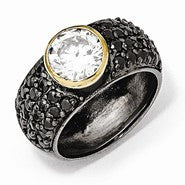 Sterling Silver Gold-Plated Black Rhodium with Black & White CZ Ring