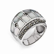 Sterling Silver Marcasite & Mother of Pearl Ring