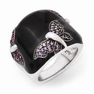 Sterling Silver Pink & Purple CZ Enameled & Butterflies Domed Ring